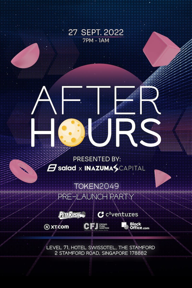 Club Salad NFT holders are also invited to this event. If you don’t already have one, check if they are still available here. One NFT gets you one ticket into the event. If you have registered to be on the whitelist, CHECK YOUR EMAIL AND TELEGRAM REGULARLY. A member of Salad’s team will reach out to you if you have been whitelisted to mint. Each person is allowed to mint a maximum of 4 passes.
