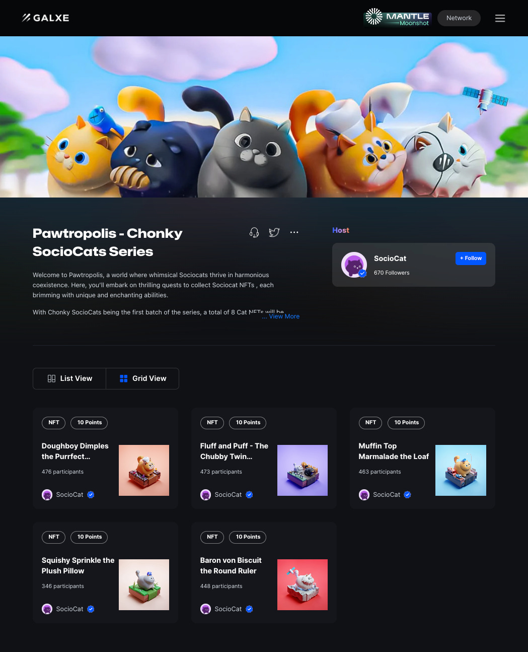 This is more than just a collection of NFTs; it's an invitation to mint your very own 3D animated chonky cat NFTs on Galxe. And guess what? It's free to mint (you only cover the gas fees).